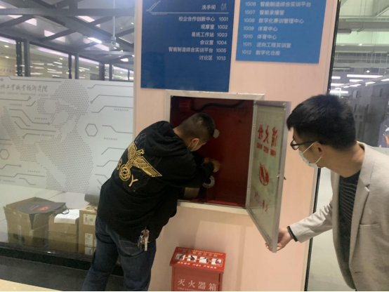 此次排查重点对教学区、生活区的供水管道至各楼层消防箱内的水带、水枪、应急灯等设施设备逐步详细地检查,对图书馆二楼教室灭火器设置不合理、敦行楼消火栓箱损坏、教职工宿舍违规使用大功率电器等隐患进行立账整改,确保学院消防安全稳定。