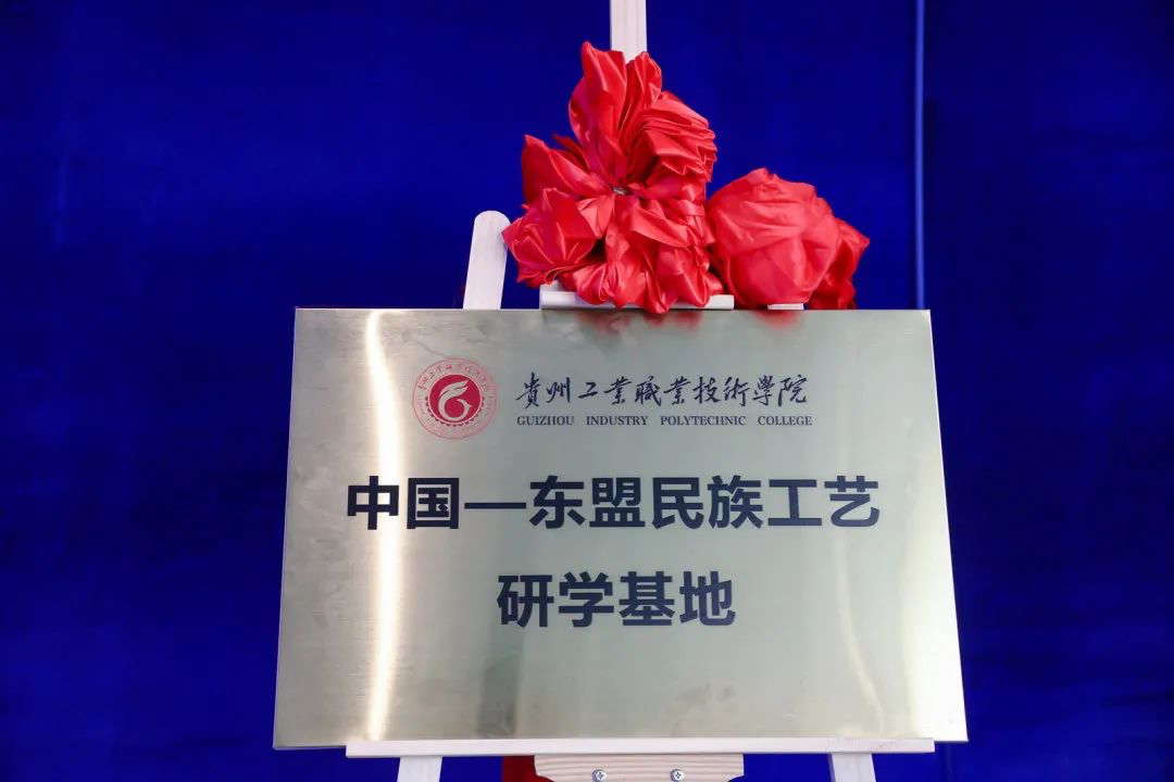 5. 学院党委副书记万山(左一)揭牌“星空web版登录入口‘中国-东盟民族工艺研学基地’”。