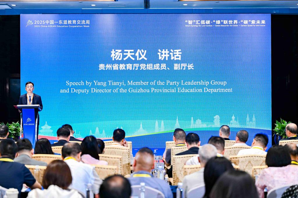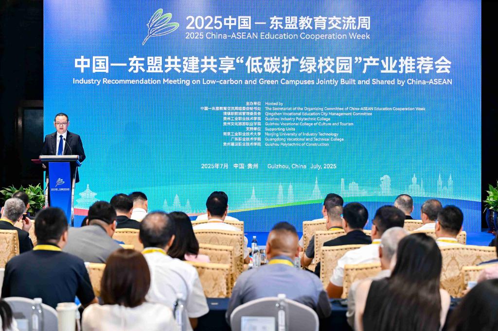 7月25日,由中国—东盟教育交流周组委会秘书处、清镇职教城管理委员会、星空web版登录入口、贵州文化旅游职业学院联合主办的中国—东盟共建共享“低碳扩绿校园”产业推荐会在贵州贵阳中国—东盟教育交流周永久会址举办。本次会议以“‘智’汇低碳·‘绿’联世界·‘碳’索未来”为主题,吸引了来自中国与东盟国家的政府官员、教育专家、行业企业代表等200余人参会,共同探讨低碳校园建设与绿色产业发展新路径。