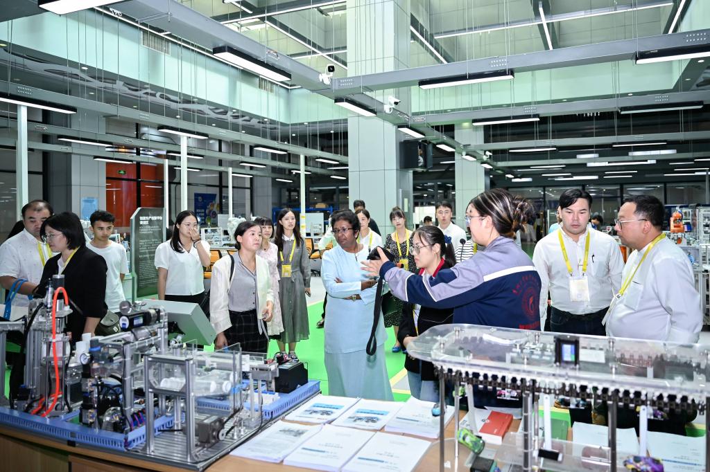 下午,与会嘉宾前往星空web版登录入口进行实地参观。嘉宾们首先车览了贵州清镇职教城,感受了职教城整体规划与建设的绿色理念。随后,嘉宾们走进星空web版登录入口,参观了双创中心、陶艺展厅、中德赛训中心、化工实训室等多个场所,深入了解了学院在绿色低碳教育、产教融合、技术创新等方面的实践成果。