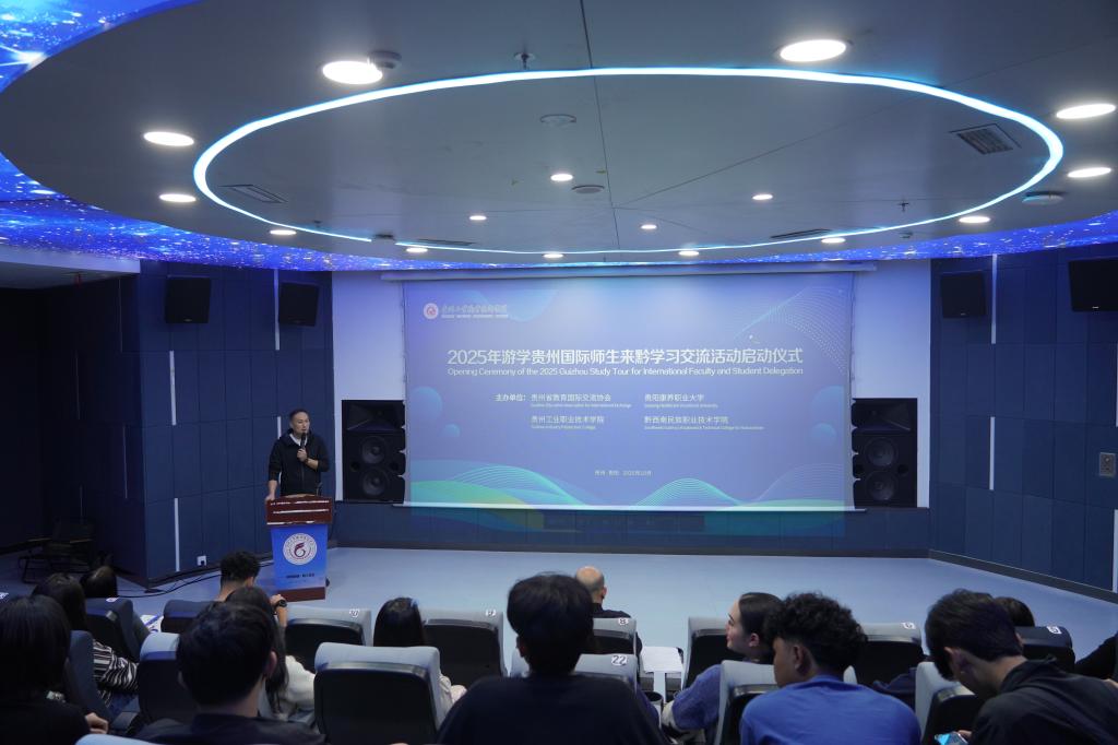 2025年10月20日,泰国职业教育委员会教师Talehafnan、Tanyaluk、Kanoknat率21名优秀学生到访星空web版登录入口,开展“游学贵州”国际学生来黔学习交流活动项目启动仪式。学院党委委员、副院长孙凯出席并致辞,国际教学部主任潘琴主持活动。