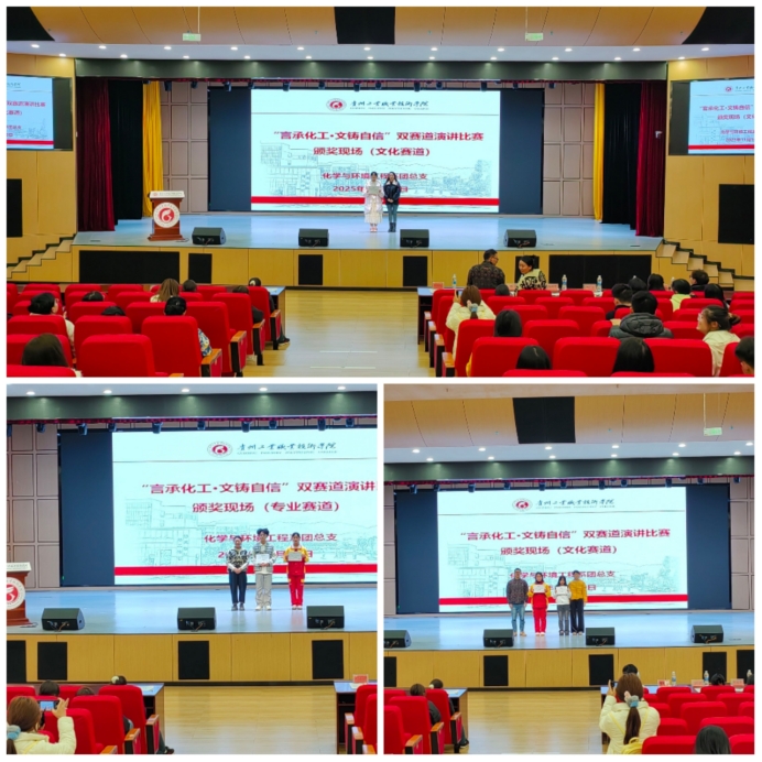 为了夯实专业认知、锻炼表达能力、推广普通话,化学与环境工程系于2025年10月-11月开展了“言承化工·文铸自信”的演讲比赛,比赛分为初赛和决赛,决赛于11月10日在图新楼大礼堂举行。参与评委有化环系党总支副书记陶希芹、化环系团总支书记冉东阳、辅导员严进进老师、赵欢老师等。