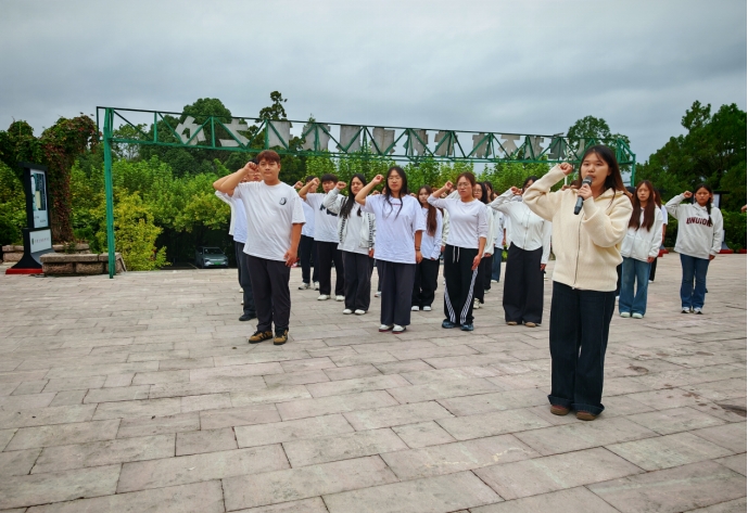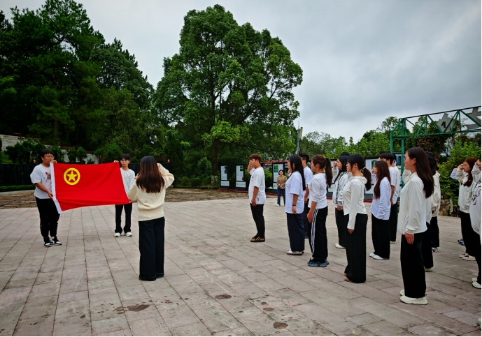 在覃智美同学带领下,全体共青团员重温入团誓词。铿锵的誓言回荡在纪念园上空,展现了师生们“不忘初心、牢记使命”的坚定信念。