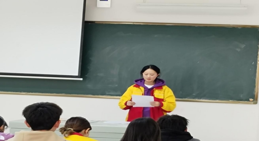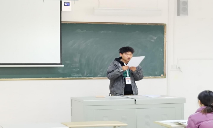 为提升国家通用语言文字应用能力,弘扬中华优秀传统文化,加强大学生普通话应用能力,我系于2023年11月17日在悦知楼L001教室进行普通话推广大使系部选拔,此次选拔由团总支艺术团承办,共有32名同学参加。并邀请了化环系雷明妍老师、艺术团团长余继翠、学生会副主席薛恒担任评委。