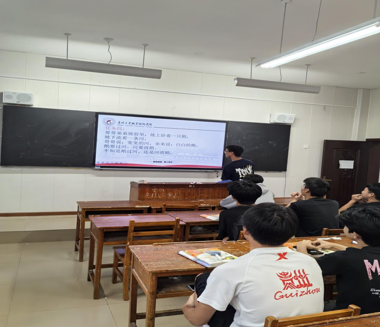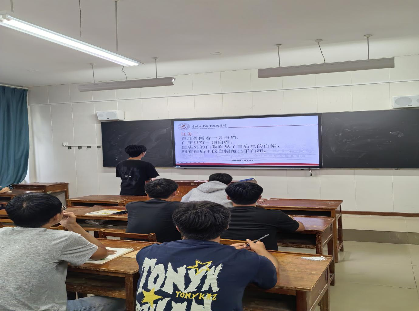 在“故事分享”环节之后,活动进入轻松有趣的实践阶段。学生依次上台进行个性化自我介绍,展现青春风采。随后开展的绕口令挑战赛将现场气氛推向高潮,“哥哥弟弟坡前坐,坡上卧着一只鹅,坡下流着一条河”等经典语句在会场回响,同学们在欢笑中锻炼了口齿清晰度与语言流畅性。