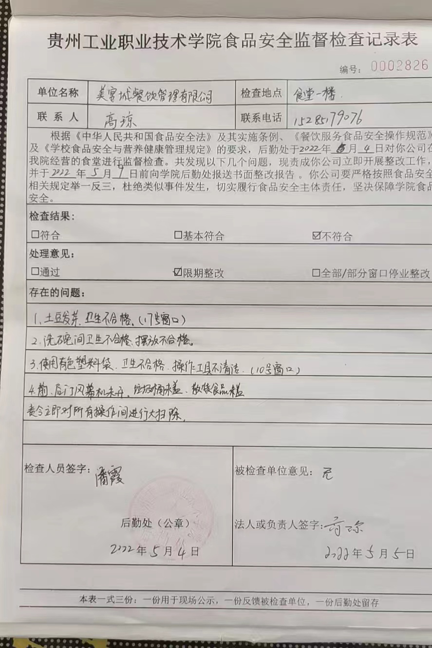 为了保证广大师生的饮食健康和食堂正常开餐,2022年5月4日下午14点后勤处处长徐顺义,副处长彭亮携后勤处食堂管理人员分别对观山湖校区和清镇校区三家食堂进行专项检查。此次检查主要针对开餐、备餐、货物储存、来源以及食堂环境卫生等问题。