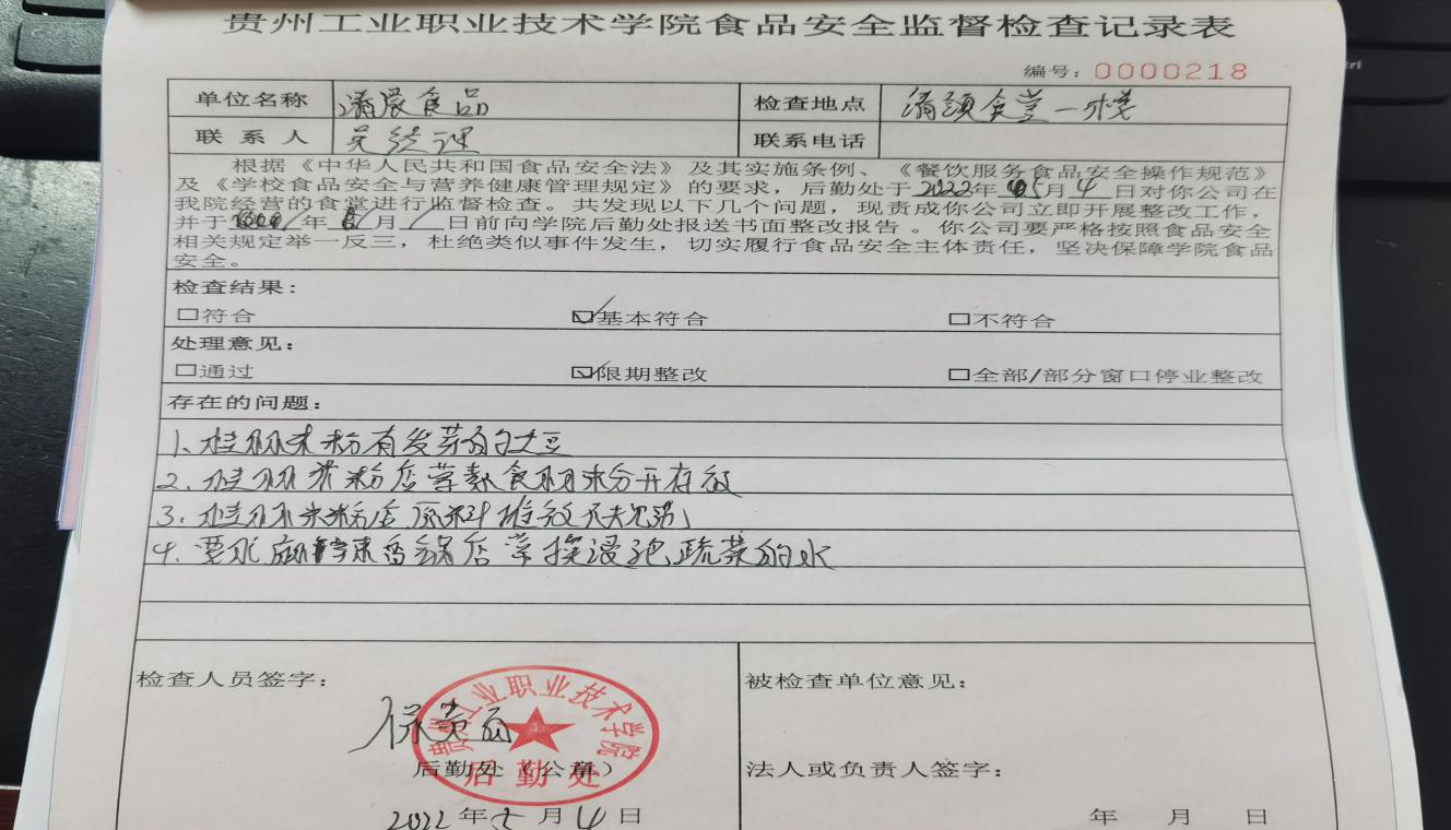 检查过程中后勤处处长徐顺义要求食堂要高度重视春夏季火灾防控,坚持疫情防控常态化,按疫情防控要求严把食品、商品进出管理,加强食品安全检查力度。对检查过程中出现的问题进行记录并反馈给食堂,以便食堂及时进行整改。