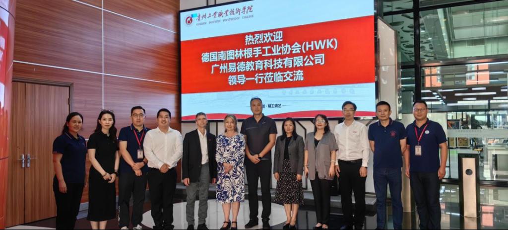 会议结束后,学院领导陪同德国与广州易德教育科技有限公司嘉宾参观中德智能制造赛训中心。嘉宾们实地考察实训设备、教学场景与“小载体”项目实践成果,深入了解学院双元制教育的落地细节与产业对接模式。为后续细化合作方案、推动“小载体”项目出海及课程体系国际认可奠定坚实基础。