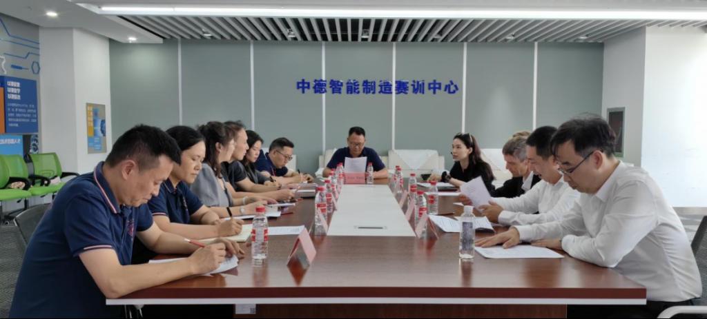 2025年9月1日,星空web版登录入口在中德智能制造赛训中心会议室与德国南图林根手工业协会(HWK)、广州易德教育科技有限公司进行座谈交流。学院副院长孙凯,国际教学部部长潘琴,智能制造工程系主任李莉娅、副主任韩鹂、何灏等主要负责同志参加座谈;德国南图林根手工业协会总经理(培训中心负责人)Manfred Tietz、国际教育主管Astrid Friedrich、广州易德教育科技有限公司总经理宋宇、副总经理曾鹏共同出席会议。