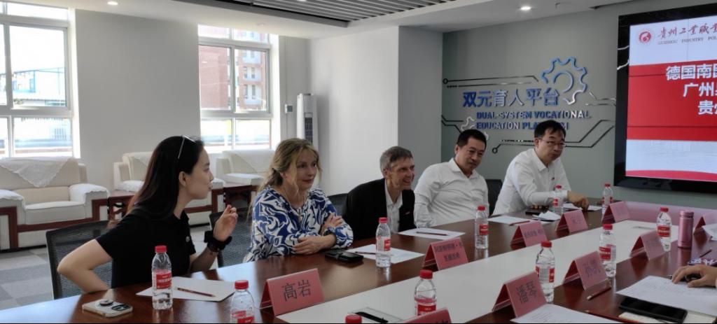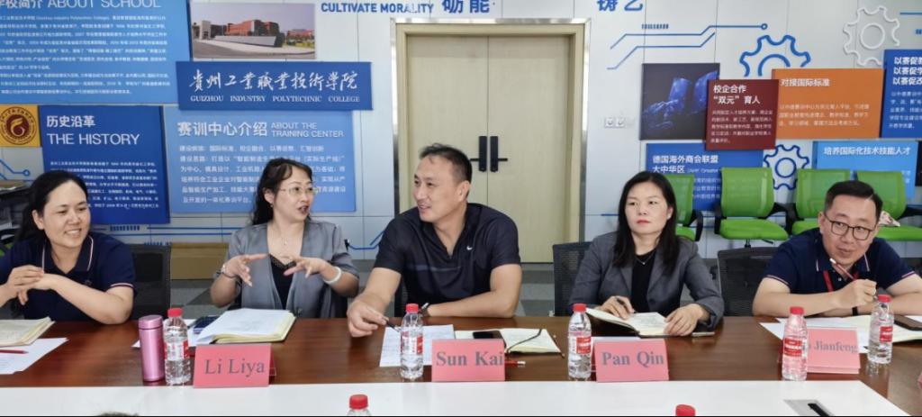 会上,李莉娅主任详细介绍中德双元制教育合作情况。学院搭建的中德智能制造赛训中心作为省级职业教育校企合作创新平台,引入德国双元制教育模式,联动吉利、长通电气、贵州轮胎厂等贵州本土龙头企业实现资源整合,推动教育与产业深度融合。在教学实践中,学院采用行为导向教学法,将企业真实案例融入课程,与德方共建25门双元制课程,30名教师顺利取得AEVO德国培训师资质,为双元制教育落地提供坚实师资保障。