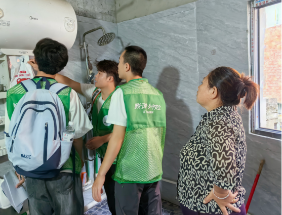 紧扣 “两清两改两治理” 乡村治理部署,实践团将专业技能与民生需求深度结合,开展系列便民服务。在村委广场设立“家电义诊”站点,免费为村民检修电风扇、电饭煲、电热水器等常用家电,用专业技术为群众生活 “添便利”;针对夏季溺水高发风险,通过发放宣传手册、巡河检查等方式,织密防溺水安全网。同时,队员们分组深入农户家中,以当地方言讲解电信诈骗套路,手把手协助村民安装反诈 APP、设置防护功能,切实守护群众 “钱袋子”,将安全保障送到群众心坎上。