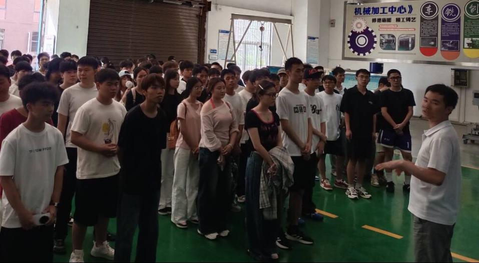 在现代加工中心,黄立宏、王鹏老师给同学们讲解加工实训安全操作规范和注意事项,并对现代加工中心的应用作简要介绍,当听到多轴加工可以制造出很多高端产品,应用于多种领域时,同学们颇感兴趣。