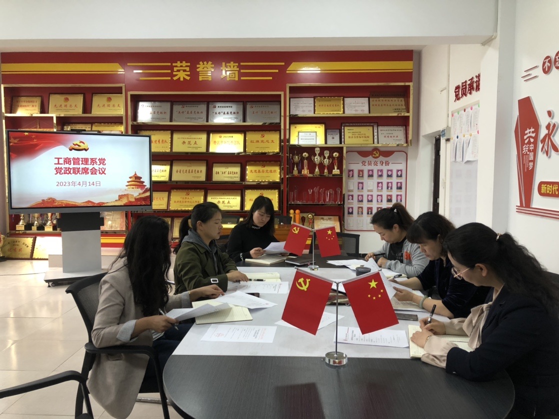 最后召开的党政联席会就党总支委员会审议通过的《工商管理系2023年党风廉政建设工作方案》《工商管理系党总支部2023年落实意识形态工作方案》等事项进行审议并一致通过。