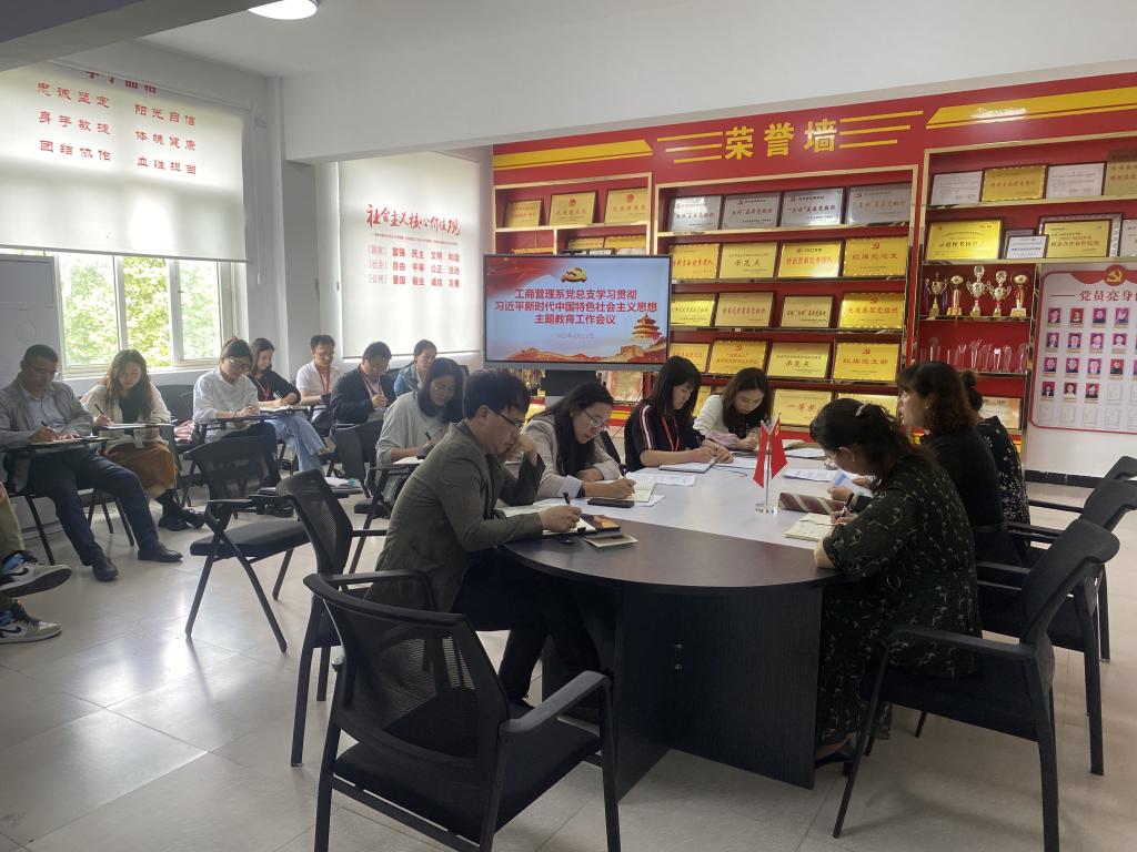 近日,工商管理系党总支组织召开学习贯彻习近平新时代中国特色社会主义思想主题教育工作会议,系党总支书记、主任李秀丽主持,全体教师参会。