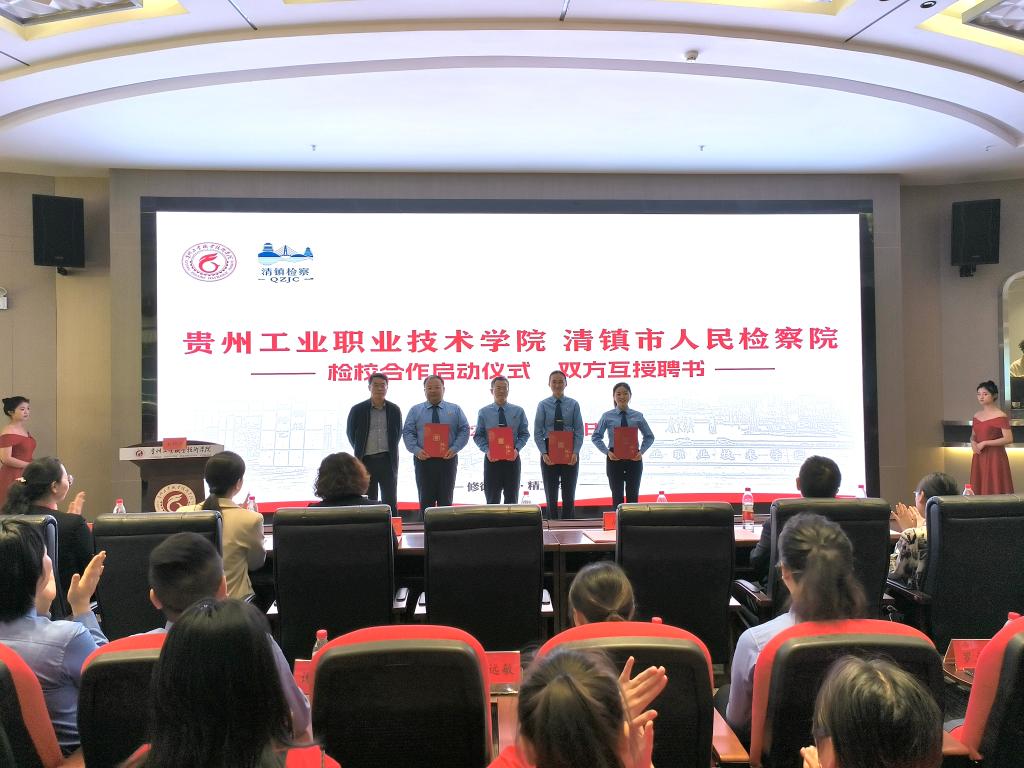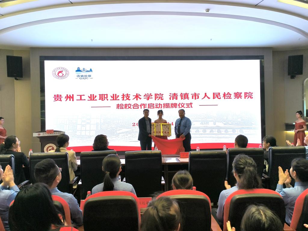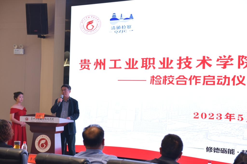 2023年5月24日,星空web版登录入口联合清镇市人民检察院在虚拟仿真实训基地发布中心举办检校合作启动仪式。贵州省清镇市人民检察院检察长余睿,清镇市民政局党组书记、局长廖斌,共青团清镇市委副书记蔡芳欣,清镇市人民检察院党组成员、副检察长谢彪等10人,我院党委副书记、院长贺华中,工商管理系党总支书记、主任李秀丽,学院团委副书记尹丽,工商管理系党总支副书记张凤出席仪式,仪式由工商管理系副主任方维主持。