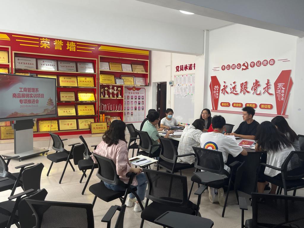 为深入开展学习贯彻习近平新时代中国特色社会主义思想主题教育,乘着调查研究之风,推动“重实践”走深走实,2023年6月2日,为将第16周商品展销实训项目工作落到实处,我系召开商品展销实训项目专项推进会,会议由系总支副书记张凤主持