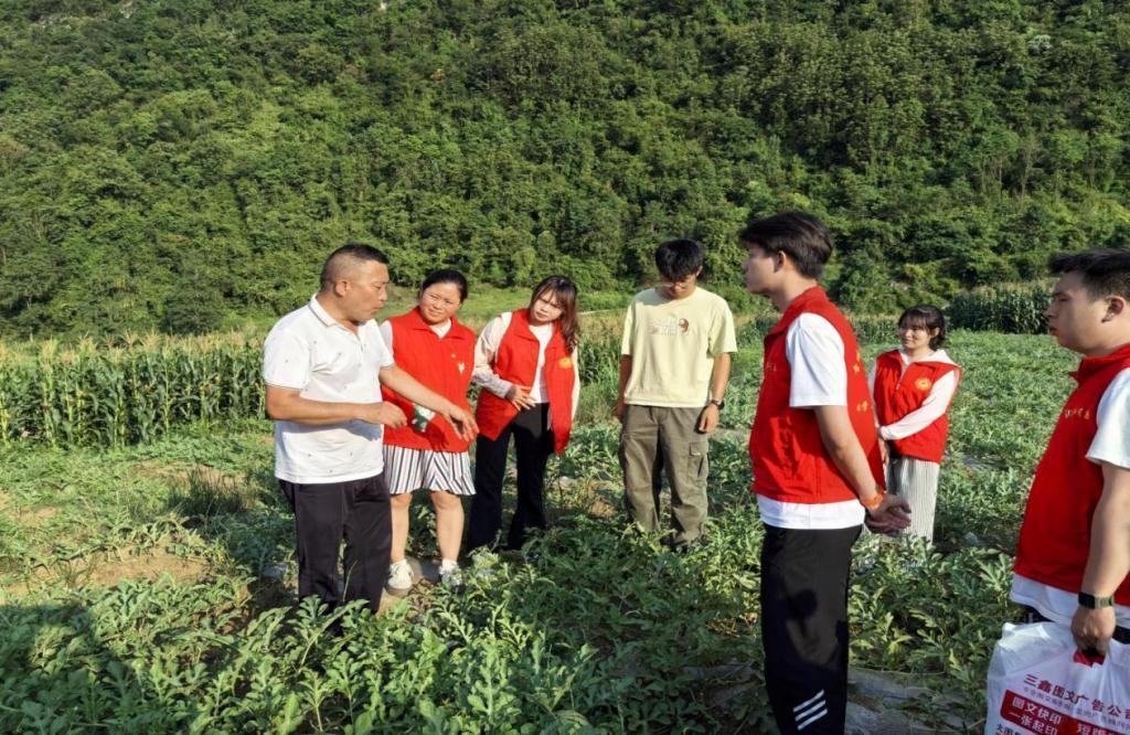 在暗流镇沙田村,队员们在驻村第一书记邓生全教授的带领下,深入西瓜种植园调研。从土壤改良到育苗翻种,从线下销售到电商直播,队员们详细记录产业发展全链条,并结合专业知识商讨策划西瓜节活动方案,探索“电商+乡村”的销售新模式。