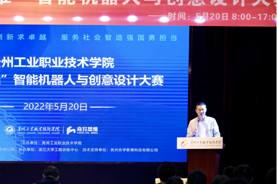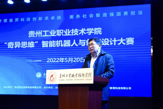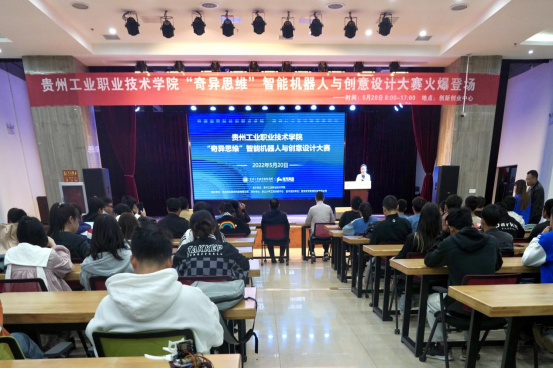 5月20日上午9:00,学院在清镇校区双创中心成功举办2022年“奇异思维”智能机器人与创意设计大赛。学院党委书记蔡志坚、党委委员、副院长谢兵莅临大赛现场,教务处处长吴荣、各系部带队老师、参赛学生及相关人员到场。此次大赛由教务处老师王瑜主持。