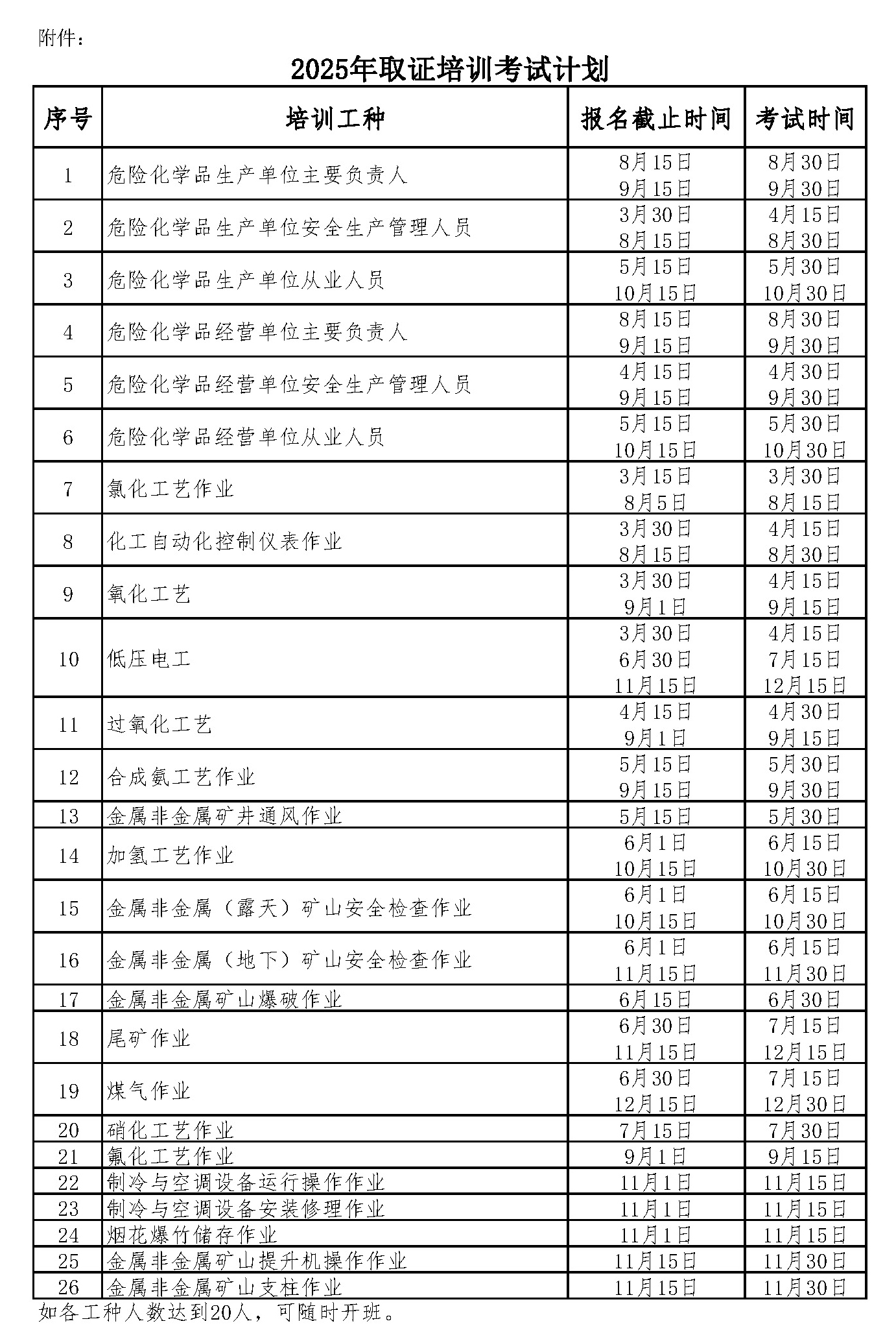 根据各企业“三项岗位人员”、从业人员的考培需求,结合中心实际情况,特制定2025年考培计划并予以公布。