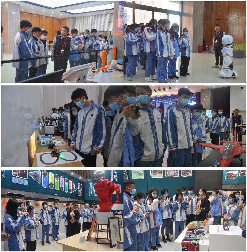 同学们参观了学院双创中心、中德赛训中心、电子竞技室、化工实训中心、山地自行车赛训基地等7个展点,近距离观看了学生组装的无人机、3D打印作品、陶艺作品等学生优秀作品展览。参观过程中,同学们不时露出惊叹、羡慕的表情。在中德赛训中心,同学们还亲自体验了一把智能控制设备的操作过程,真切感受到人工智能技术为现代工业发展带来的技术变革。