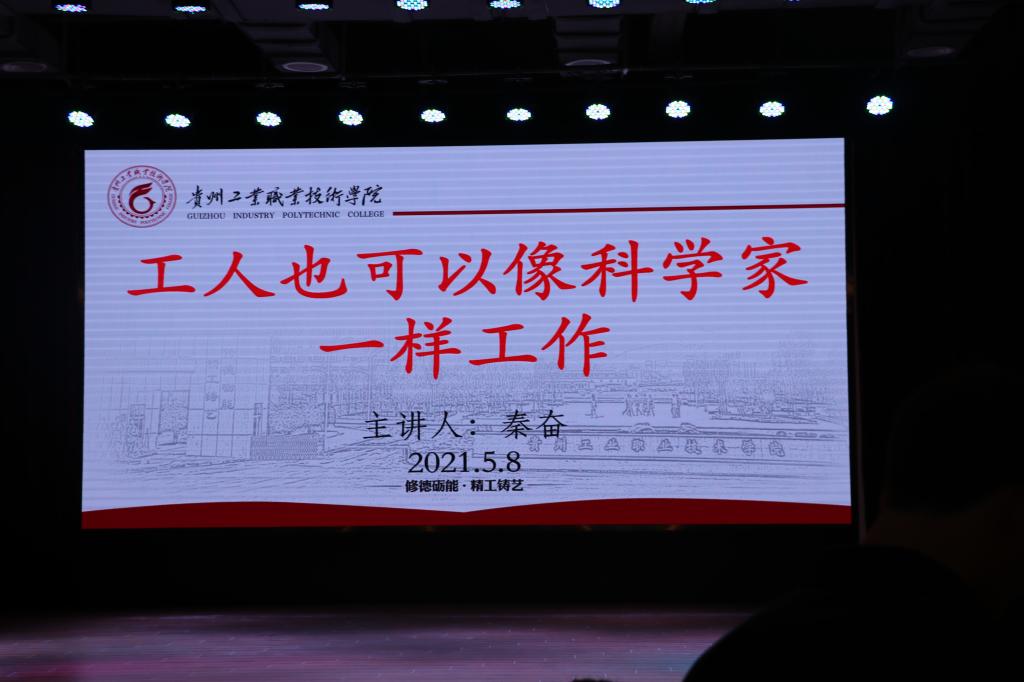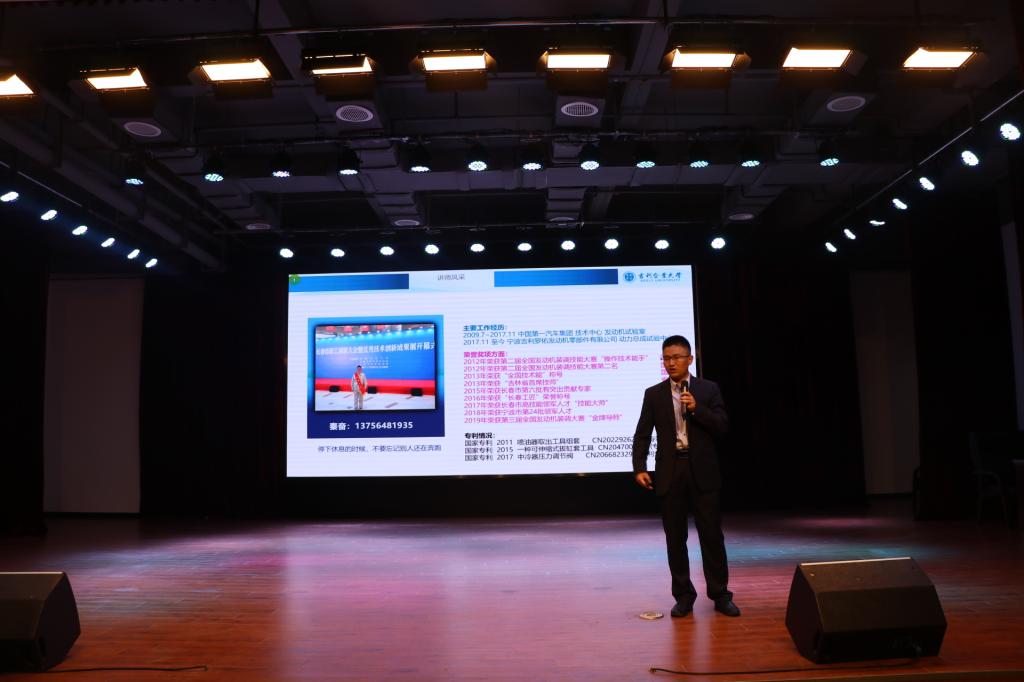 为弘扬工匠精神,感悟践行“弘扬工匠精神 提升职业素养”理念,丰富校园文化内涵建设,提升学生职业素养,5月8日在时光校区双创中心举办了“工匠进校园”讲座活动。本次讲座主题为“工人也可以像科学家一样工作”,主讲专家秦奋,就职于宁波吉利罗佑发动机零部件有限公司,从事发动机试验验证12余年,曾获得全国技术能手荣誉称号、浙江省浙江工匠荣誉称号,入选了“百千万高技能领军人才培养工程第三层次”人才培养。招就办主任陈怡、机电系、汽车系主管就业的领导、以及吉利长兴、吉利发动机订单班学生共计105人到场聆听讲座。