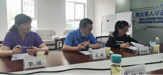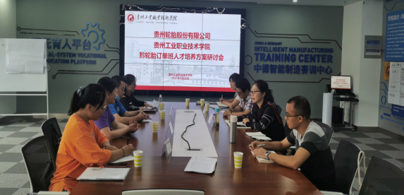 6月22日上午,黔轮胎订单班人才培养方案修订研讨会在我院中德赛训中心办公室召开。贵州轮胎有限公司人力资源部部长李瑛、高级工程师刘从琦等一行四人,以及我院招就办陈怡主任、机电系负责人李莉娅、王京、中心主任邱雪参加了研讨。