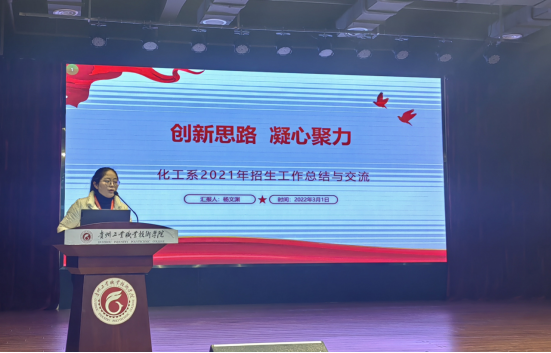 2021年获得招生、就业评级一等次的化工系和信息系分别上台进行了交流发言,信息系党总支张胜书记颇有感悟,她认为,就业工作需要倾注心血和时间,要找到贴合学生需求的方式来做就业指导,而且需要一支稳定的、专业的就业队伍;化工系党总支杨文渊则从“创新思路 凝心聚力”为主题介绍了系部招生工作的过程和思考,也提供了今年招生工作的思路,主要是提前谋划、优化举措,做到招生-培养-就业联动。
