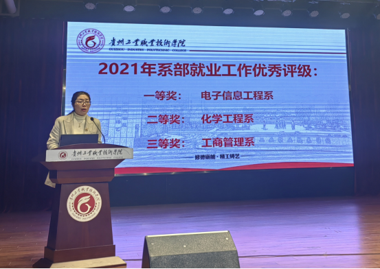 会上,学院招就办主任陈怡作了2021年招生、就业工作总结,她从宏观的视角,用详实的就业数据、精准的评价指标,历史动态地分析了我院2021年的招生就业工作,为学院更好地谋划招生和就业工作提供了参考。2021年学院招生就业工作取得了新突破,录取总人数为5888人,综合报到率达到87.25%;毕业初次去向落实率为85.67%,高于全省水平,贵州省战略性产业就业情况高于全省平均水平;同时,圆满完成了20221年度宏志计划培训指标,学员综合满意度高达99.40%。总结过后,陈主任宣读了学院2021年首次招生、就业考核工作各系部的评级。