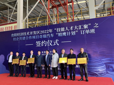 贵阳经开区以“强省会”行动计划为契机,围绕毕业生专业设置和经开区企业用人需求,充分利用奇瑞万达“省级高技能人才培训基地”的资源,搭建奇瑞汽车“精鹰计划”订单班共建项目战略合作平台,促进毕业生留城市留筑。
