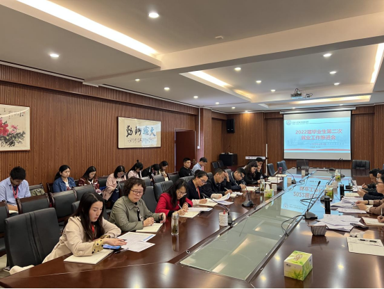 4月14日下午14时,星空web版登录入口在时光校区悦知楼三楼大会议室召开2022届毕业生第二次就业工作推进会,校党委副书记、院长贺华中、学院党委委员、副院长梅松出席会议,会议由招就办陈怡主任主持,各系部党委书记、就业专员、全体毕业班辅导员和招就办工作人员参会。
