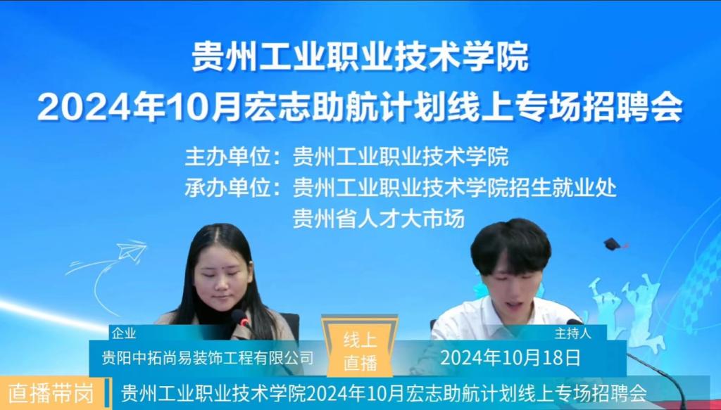 10月18日下午,由星空web版登录入口主办,星空web版登录入口招生就业处、贵州省人才大市场承办的“星空web版登录入口2024年10月宏志助航计划线上专场招聘会”在多维云聘微信小程序成功举办。活动旨在为校内毕业生和用人单位搭建一个便捷的交流平台,进一步帮助星空web版登录入口的同学们实现充分、高质量的就业。