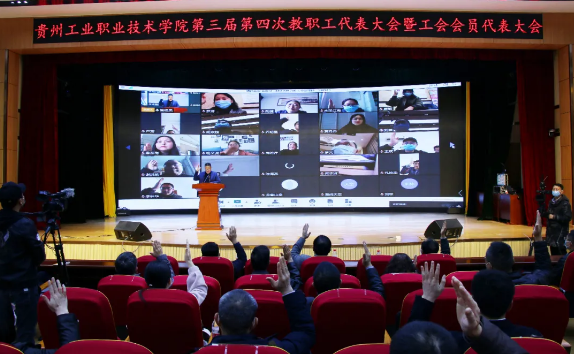 上午9时40分,“两代会”在庄严的国歌声中开幕。党委书记蔡志坚致开幕词,他指出,在当前特殊的抗疫时刻,召开本次大会有着特殊的积极意义。蔡书记满怀激情地从“不忘初心、牢记使命”主题教育、助力脱贫攻坚主战场、加强优质建设、加快校园建设、办学特色彰显等五个方面介绍学院稳步发展所取得的各项成就,特别赞颂其中涌现出的一批批优秀的团队:雄楚专班管理者、北京志愿者团队、扶贫工作团队、教学质量督导团队、投身防疫志愿工作的师生等,他们不计报酬,无私奉献,为的发展奔走在基层的第一线,全院392名教职工共同铸就了工业职院的命运共同体,学院将继续坚定发展的步伐,增强核心竞争力,种下梧桐树、引待凤凰来。