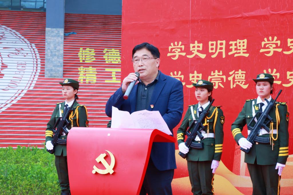 2021年5月18日,星空web版登录入口在清镇校区时光广场举行“党史百年”时光长廊启动仪式,党委书记蔡志坚出席仪式并讲话,党委班子成员、各系部处党政负责人、各基层党组织党员干部、学生代表共计400余人参加启动仪式,仪式由党委副书记、院长贺华中主持。