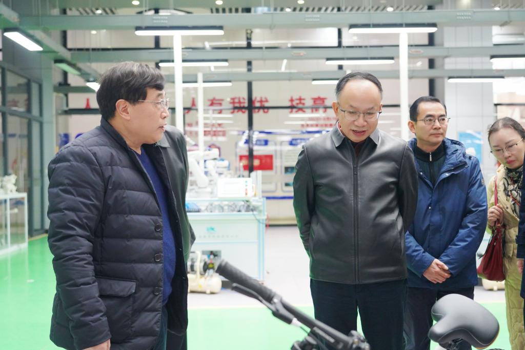 12月19日上午,贵州省政协副主席、党组副书记赵德明,贵州省政协副秘书长、机关党组副书记、一级巡视员张二宏 ,贵州省政协委员、贵阳市政府副市长、民进贵阳市委主委龙丛,贵阳市政协党组成员、副主席向洋一行到我校开展委员界别活动。学院党委书记蔡志坚,党委副书记、院长王昌辉,党委委员、副院长孙凯陪同参观了双创中心、民族工艺品展厅、中德智能制造赛训中心、退役军人职业教育基地、后勤智能管理平台等地。