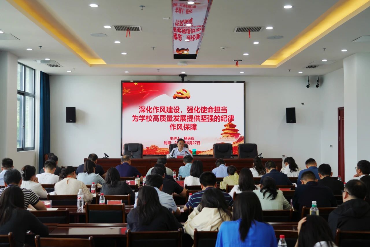 杨天仪副厅长以“深化作风建设,强化使命担当,为高质量发展提供坚强的纪律作风保障”为主题展开授课。党课围绕“三个带头”重点内容,通过带头敬畏规定、带头学习规定、带头落实规定进行阐述,以身作则带领各教师深刻认识重要精神、学深悟透学习规定、不断强化作风建设、带头严守纪律红线、严格落实工作职责。他强调,全体党员干部要坚持把深化作风建设作为首要任务,静下心来、认真钻研、真正学深悟透中央八项规定精神、真正锲而不舍强化学习效果、真正徙木立信形成优良党风、真正掷地有声做到久久为功。