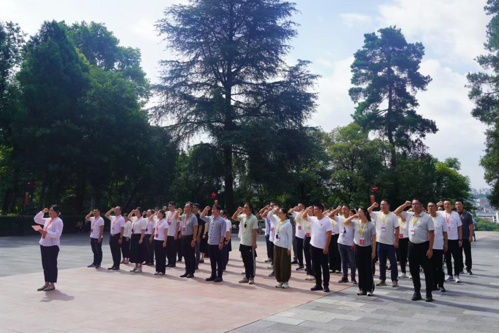 在实地教学环节,学员们参观娄山关红军战斗遗址、遵义会议会址等地,瞻仰英勇无畏、舍生取义的革命烈士,在纪念碑前向烈士敬献花篮,重温入党誓词。随后聆听讲解员现场讲述革命英雄的事迹,在历史情境中感悟红色精神,筑牢信仰之基。