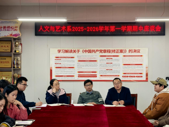 为全面了解本学期教学运行状况,11月3日-13日,我院各系分别在观山湖校区和清镇校区组织召开了2025-2026学年第一学期期中教学检查座谈会。教务处、人文与艺术系、马克思主义教学系等相关系部均派出教师代表参与各系座谈,与各系学生代表进行深入交流。