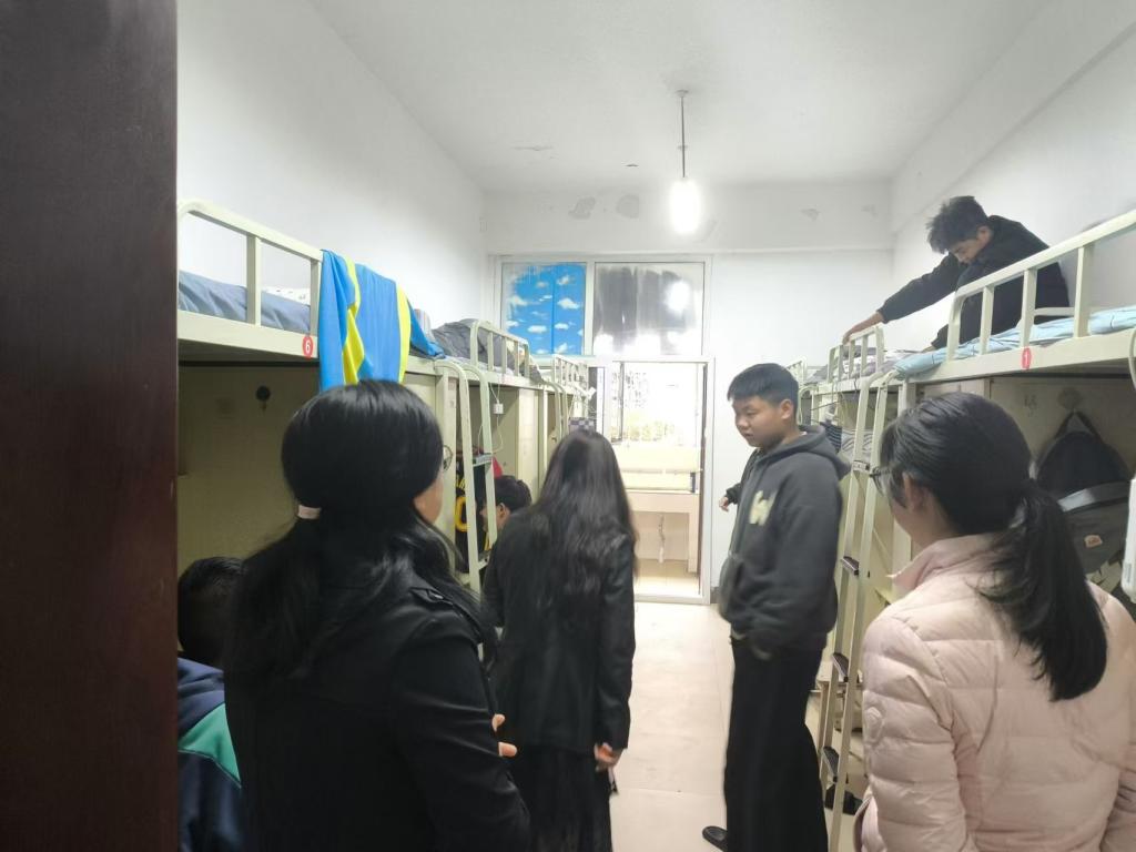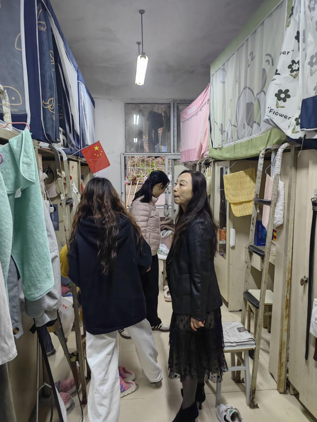 为进一步做好学生安全教育管理工作,关心和关注学生的生活、学习和安全。11月18日,由陈敏主任、丁玲书记带队走访学生寝室,查寝过程中带队老师与同学们进行了亲切交流,陈主任关心同学们的生活状况,叮嘱同学们注意用电安全、财产安全。同时及时联系宿管、后勤反映寝室设施的问题,后勤部门也表示会及时上门维修,保证学生们的正常生活。