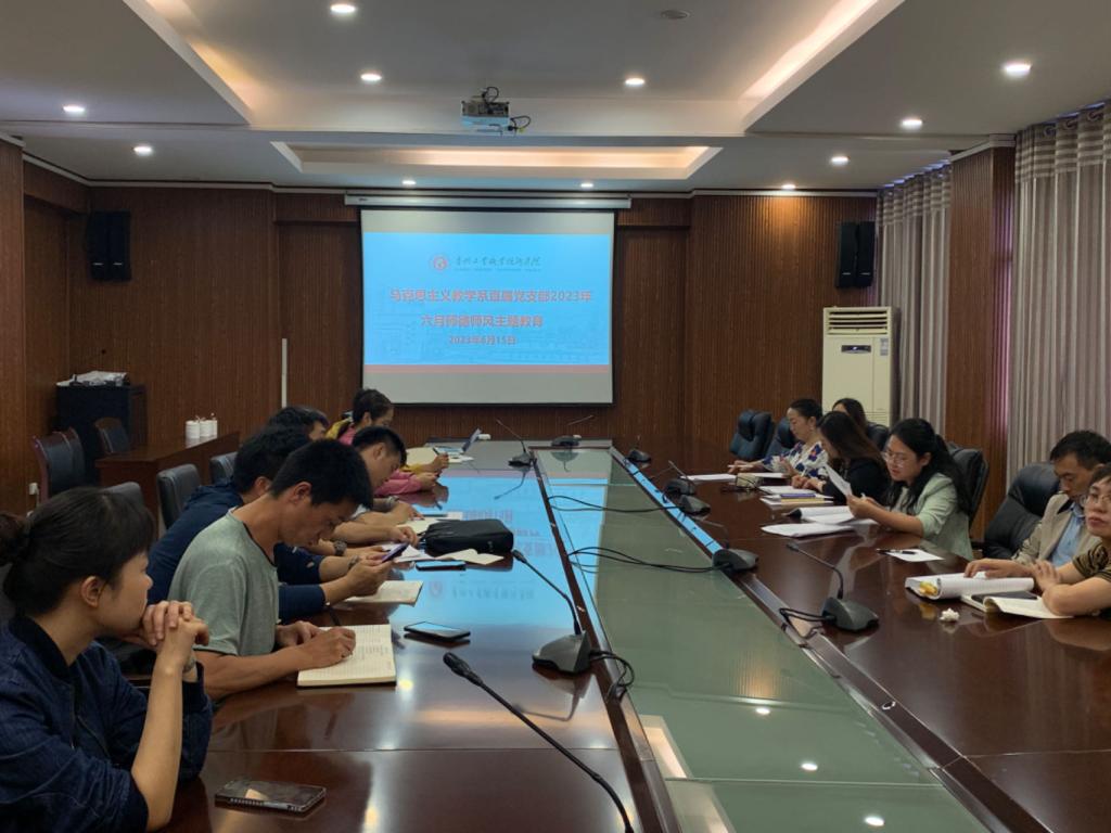 2023年6月15日中午,马克思主义教学系直属党支部组织召开了2023年6月师德师风主题教育会,支部书记丁玲同志主持,马克思主义教学系全体教师参加。