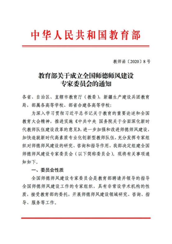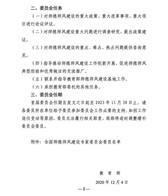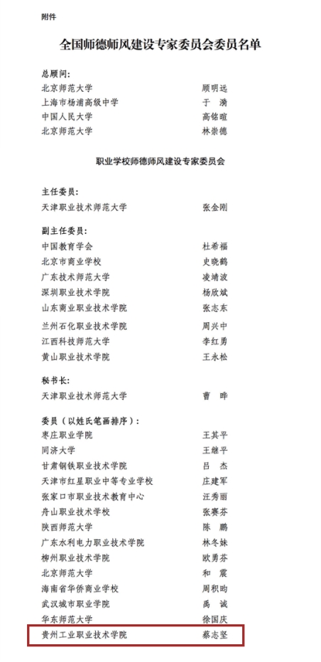 名单,星空web版登录入口党委书记蔡志坚入选为职业师德师风建设专家委员会委员。