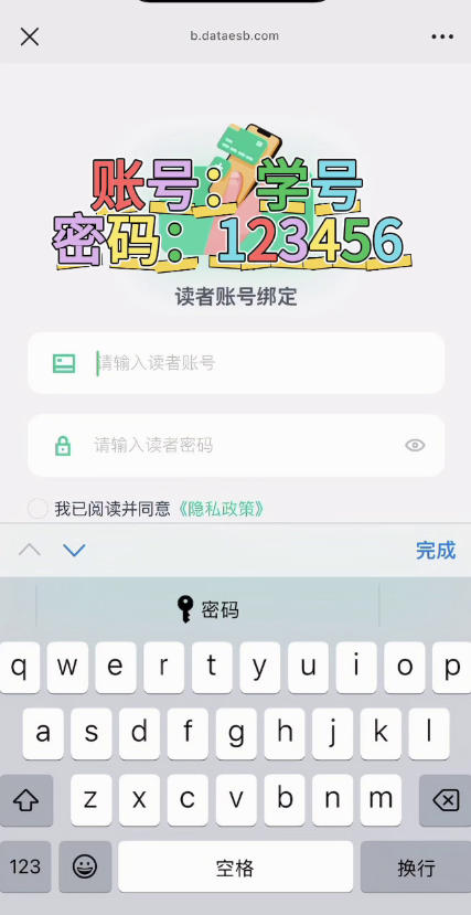 三、读者账号为学号或工号,初始密码为123456,在绑定成功后,请师生们尽快修改密码,以确保账号使用的安全