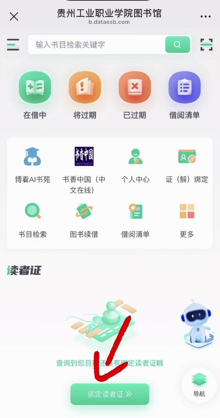 二、页面跳转后,选择“绑定读者证”
