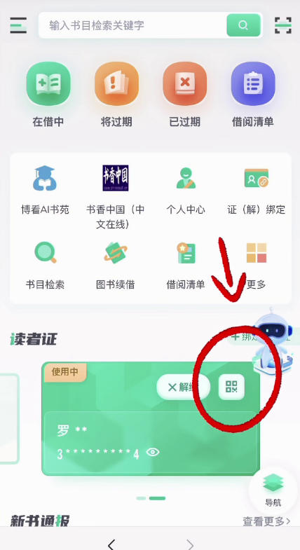 四、绑定成功后,点击读者证右上方的二维码图标