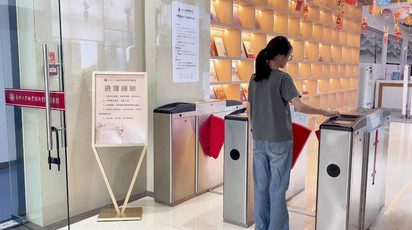 五、进入图书馆时,在闸机处进行扫码,即可入馆