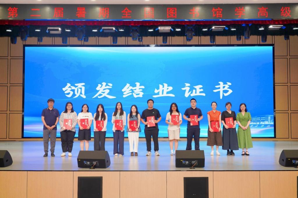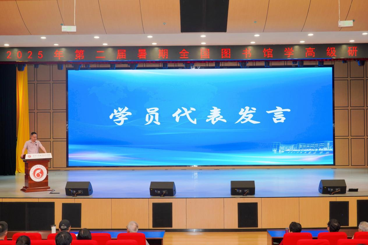 7月26日,为期七天的2025年第二届暑期全国图书馆学高级研修班在我院圆满收官。结业典礼上,北京大学信息管理系王子舟教授作为指导单位及教师代表发言。电子科技大学成都学院图书馆馆长王昌权、盐城市图书馆副研究馆员吴莹莹、武汉大学博士研究生朱秋雨三位学员作为学员代表发言。在颁发结业证书后,贵州省高等图书馆工作指导委员会副主任委员卢云辉作为主办单位代表作总结。结业典礼由贵州省图书馆学会理事长、贵州省图书馆馆长彭银主持。