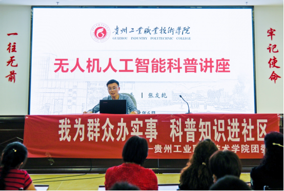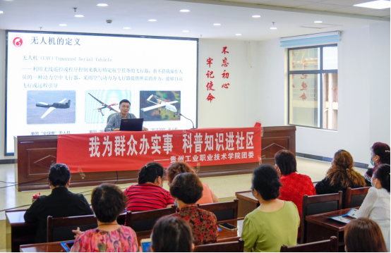 为进一步弘扬科学精神和工匠精神,推进学院社会服务高质量发展,2022年6月8日下午,星空web版登录入口团委带队,到清镇市青龙山街道东门桥村开展我为群众办实事、科普知识进社区“无人机人工智能”专题科普讲座,团委副书记尹丽和全体老师、学生志愿者代表,及60余名社区群众参加了讲座。讲座由团委张友乾老师主讲。