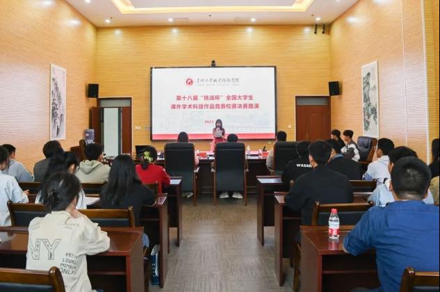 为进一步贯彻落实第十八届“挑战杯”全国大学生课外学术科技作品竞赛有关工作要求,充分营造学院科技创新浓厚氛围,切实激发我院学生创新精神和科创思维。2023年4月23日,星空web版登录入口第十八届“挑战杯”全国大学生课外学术科技作品竞赛校赛决赛在清镇校区图信大楼圆满举行。贵州黔宇宙信息技术有限公司总经理王明浪、广西大学品牌发展研究所总经理董蕴辉,及有关科创行业专家一行6人应邀出席比赛。学院团委全体同志及各系部处决赛项目团队成员250余人参加比赛。