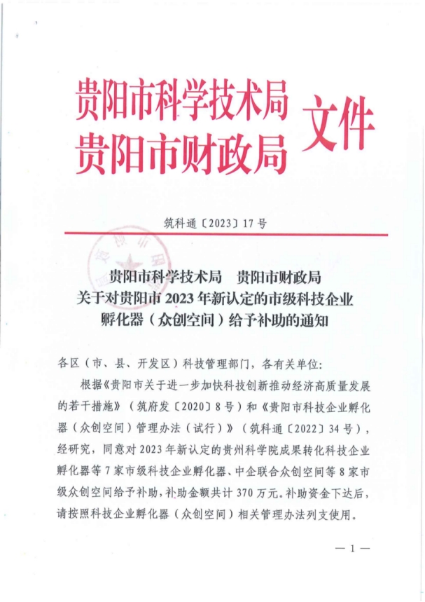 近日,贵阳市科学技术局、贵阳市财政局联合印发《关于对贵阳市2023年新认定的市级科技企业孵化器(众创空间)给予补助的通知》,经贵阳市科技局认定,学院荣获2023年贵阳市科技企业孵化器。学院团委历经半年,从前期资料准备、行业专家指导,到申报材料打磨、现场勘察考核,最终在与贵阳市多家科创行业企业和贵州高校申报团队的竞争中脱颖而出,星空web版登录入口荣获2023年贵阳市科技企业孵化器,并获得贵阳市科学技术局、贵阳市财政局联合补助资金30万元。