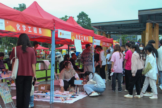 摊位现场气氛满满,同学热情高涨不断