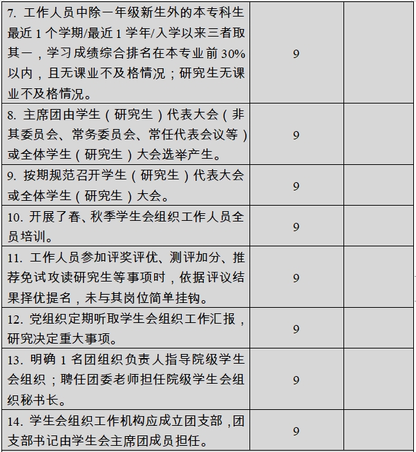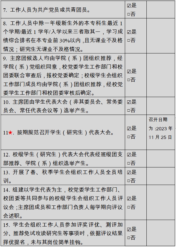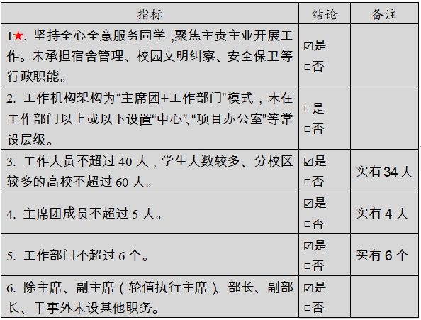 二级学生会组织改革自评表